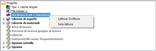 In Inventor 2012, l'opzione Usa libreria di stili = No è stata rimossa dalle impostazioni del file di progetto. A partire da Inventor 2012, se lo stile corrisponde a uno stile nella libreria di stili, vengono automaticamente eliminati tutti gli stili dai documenti di Inventor. Se si definisce uno stile personalizzato basato su un modello personalizzato e non su una libreria di stili nella versione precedente, impostare l'opzione Usa libreria di stili su Sì o Lettura-Scrittura, come illustrato nelle immagini seguenti. Questa azione consente di salvare uno stile personalizzato di un modello personalizzato nella libreria di stili della nuova versione di Inventor.