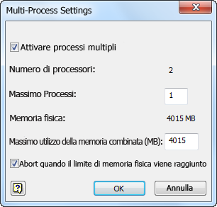 - Programmazione operazioni supporta processi multipli per abbreviare la migrazione. Nel menu Impostazioni, fare clic su Processi multipli... per aprire la finestra di dialogo Impostazioni processi multipli (vedere Figura 1).