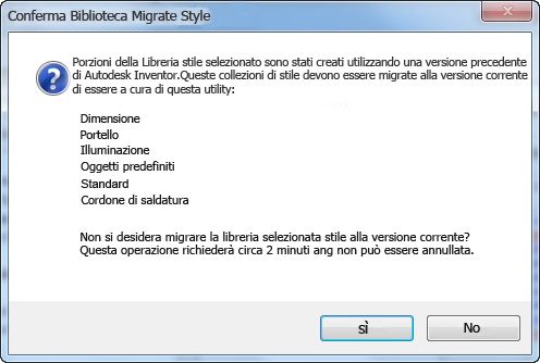 - Una volta eseguita la migrazione, non è possibile utilizzare le librerie di stili con le versioni precedenti di Inventor.