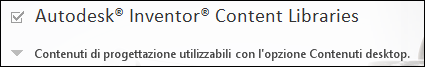 | Contenuto standard di Sistemi su percorso | Contenuto per cavi e cablaggi e parti di tubi e raccordi per tubi (solo per Autodesk Inventor Professional) |