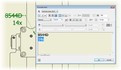 L'anteprima del testo in un file di disegno viene creata dinamicamente nella finestra grafica quando si crea o si modifica il testo. È possibile rifinire l'aspetto del testo prima di chiudere la finestra di dialogo Formatta testo.
