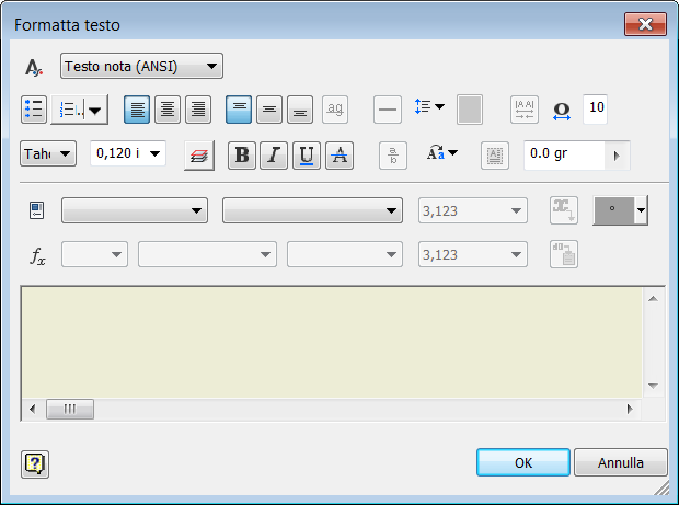 La finestra di dialogo Formatta testo è stata semplificata e rivista per essere semplice e facile da utilizzare. Le dimensioni della finestra di dialogo sono state ridotte per fornire più spazio per la modifica nella finestra grafica.