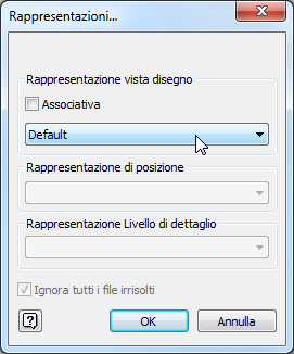 È possibile controllare l'associatività tra la vista di presentazione e la definizione della rappresentazione della vista di disegno nel file del modello.