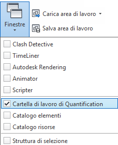 L'interfaccia utente di Quantification è costituita da: Cartella di lavoro di Quantification, Catalogo elementi e Catalogo risorse. I cataloghi definiscono la struttura organizzativa del progetto e in genere contengono gruppi di elementi e materiali da utilizzare per la valutazione. È possibile aprire un numero qualsiasi di tali finestre in una sessione.