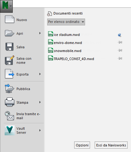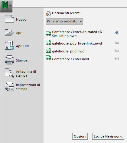 Per aprire il menu dell'applicazione, fare clic sul pulsante del menu Applicazione