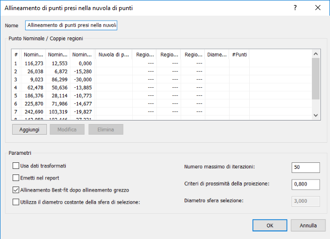 Per creare un allineamento di punti presi nella nuvola di punti