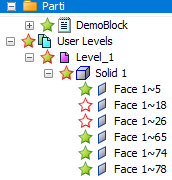 In questo esempio, Faccia 1~18 e Faccia 1~26 in Level_1 sono escluse dalla verifica delle collisioni: