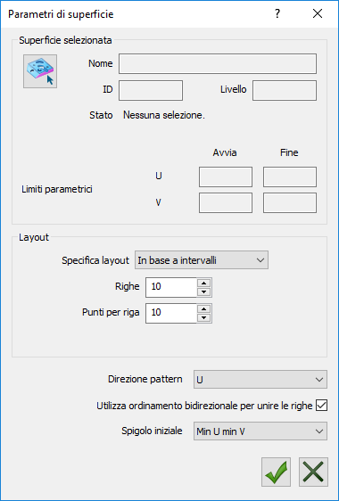 per confermare la superficie e chiudere la finestra di dialogo. I dettagli e i limiti parametrici della superficie sono visualizzati nella finestra di dialogo Parametri di superficie.