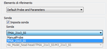 PowerInspect aggiunge automaticamente un elemento Sonda e parametri quando si crea un documento. Usarlo per specificare le impostazioni iniziali di sonda e rilevamento per l'ispezione.