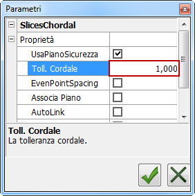 Cordale - Il parametro ChordalTolerance controlla il numero di punti sonda specificando la distanza massima a cui può trovarsi una corda tra due punti sonda rispetto alla circonferenza di un cerchio.