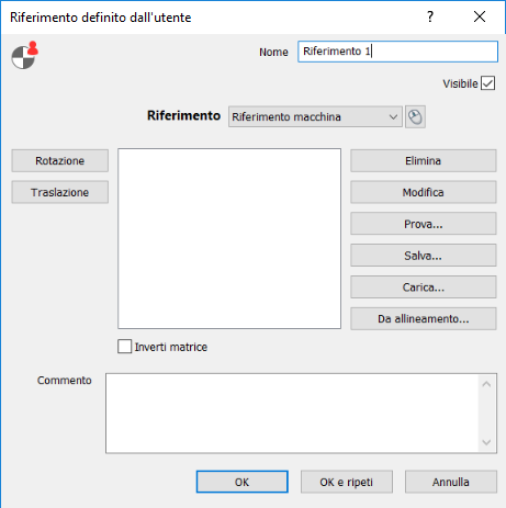 - Specificare la matrice di trasformazione per definire il riferimento. Fare clic su: