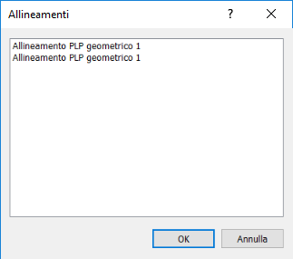 Per caricare la matrice di trasformazione derivata da un allineamento, selezionare un allineamento nell'elenco e fare clic su OK. Le eventuali trasformazioni vengono eliminate e viene visualizzata la matrice derivata dalle misurazioni dell'allineamento.