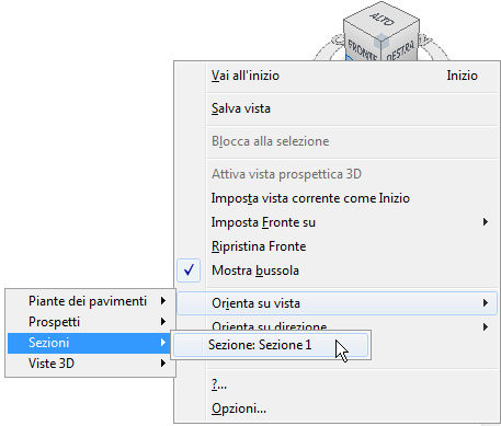 È possibile utilizzare il ViewCube per modificare l'orientamento di una vista in base a qualsiasi vista di pianta, di prospetto, di sezione o 3D del progetto.