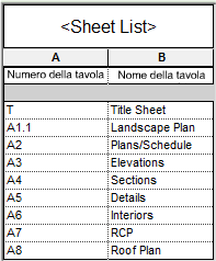 In Revit LT, la colonna Sheet Order viene nascosta nell'elenco di tavole.