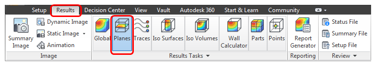 1. To start, click Results (tab) > Results Tasks (panel) > Planes.