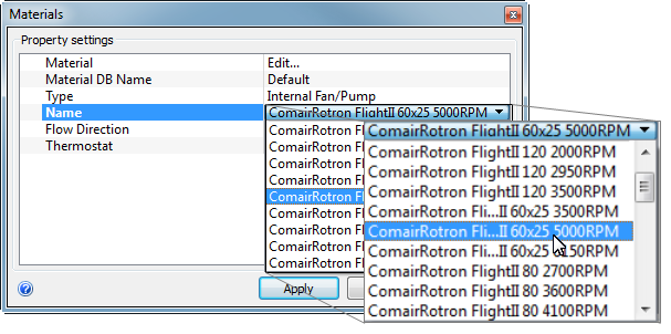 4. From the Name menu, select ComairRotron FlightII 60x25 5000 RPM.