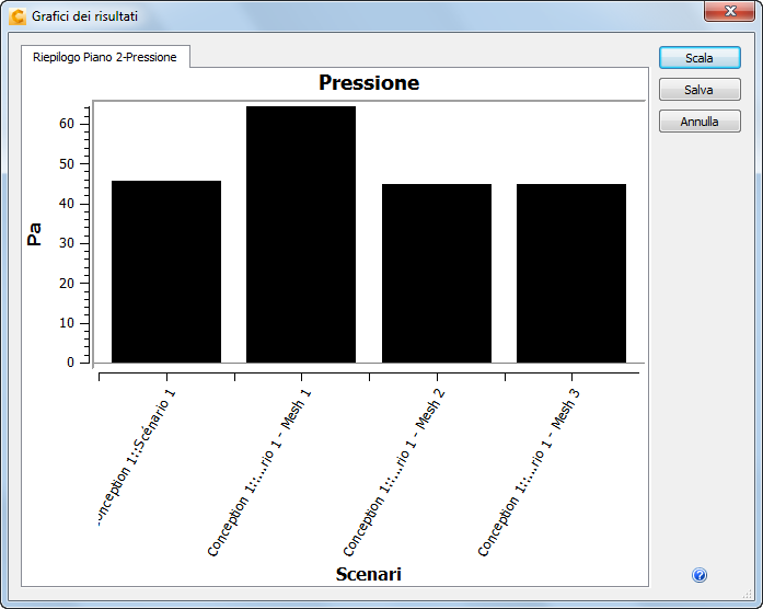 Per tracciare la pressione dalle quattro mesh, fare clic su Pressione, quindi fare clic sul pulsante Traccia righe selezionate: