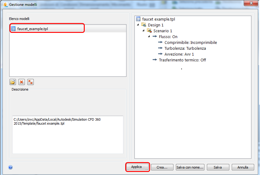 Selezionare faucet_example.tpl e fare clic su Applica.
