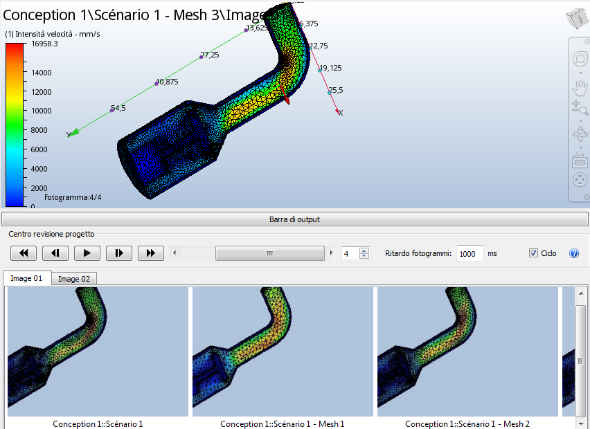 Per confrontare le quattro mesh, utilizzare il dispositivo di scorrimento e i controlli "VCR" nel Centro revisione progetto.