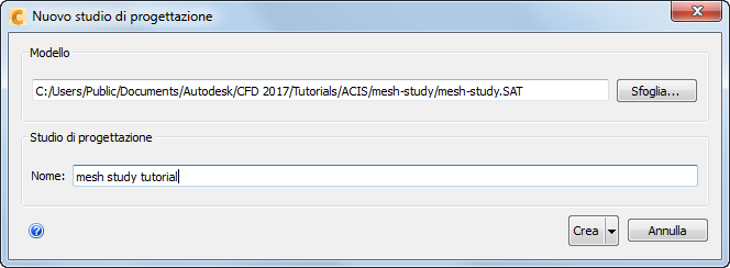 Nella finestra di dialogo di gestione dei file, passare alla cartella Utenti\Pubblica\Documenti pubblici\Autodesk\CFD 2019\Tutorials\<tipo di file>\mesh-study.