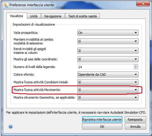 Uscire da Autodesk® CFD. La modifica diventa effettiva all'avvio successivo di Autodesk® CFD.