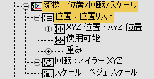 リスト コントローラは、複数のコントローラを組み合わせて 1 つの効果を生成します。リスト コントローラは、構成要素である各種コントローラの処理順序を管理する機能を持つ、複合型のコントローラです。コントローラは上から下の順序で評価されます。さらに、リスト内の各コントローラの重みを設定して、相対的な影響を指定することができます。