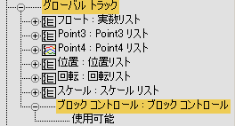 ブロック コントローラは、グローバル リスト コントローラの 1 つで、オブジェクトや時間の異なる複数のトラックを 1 つの「ブロック」にグループ化します。ブロックを使用すると、アニメーションを任意の位置に再作成できます。ブロックはトラック ビューに追加したりトラック ビューから削除できる他、トラック ビュー内で視覚的に操作(拡大/縮小および移動)したり保存したりできます。ブロックは、絶対アニメーションと相対アニメーションのいずれかを示します。