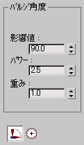 他のバルジの効果に対する、現在のバルジ角度の効果の相対的な重みを指定します。範囲は 0.0 ~ 100.0 で、既定値は 1.0 です。