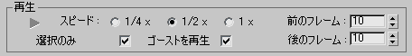 これらのコントロールを使って、[トランジション エディタ](Transition Editor)ダイアログ ボックス内でトランジションを再生できます。