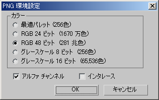 [レンダリング出力ファイル](Render Output File)ダイアログ ボックスの[レンダリング](Render)または[設定](Configuration)をクリックすると、[PNG 環境設定](PNG Configuration)ダイアログ ボックスが表示されます。