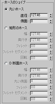 ホース断面のシェイプを設定します。既定値は[丸いホース](Round Hose)です。