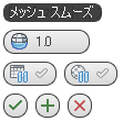 [選択をメッシュ スムーズ](MeshSmooth Selection)では、[キャディ コントロールを有効](Enable Caddy Controls)がオンのときにキャディ インタフェースが使用され、オフのときには標準設定のダイアログ ボックスが使用されます。キャディ コントロールの詳細は「キャディ インタフェース」を参照してください。