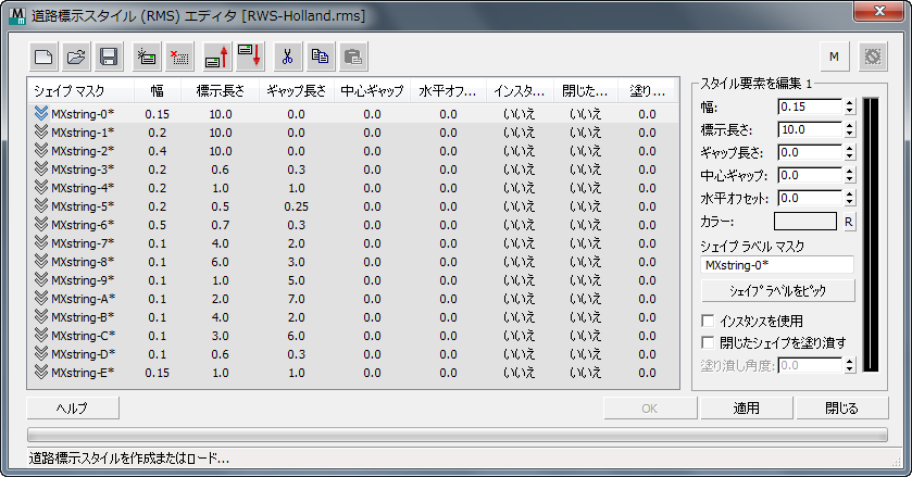 道路標示スタイル エディタを使用して道路標示タイプをシェイプ ラベル マスクに関連付けることによって、視覚化モデルにさまざまな道路標示タイプを適用できます。