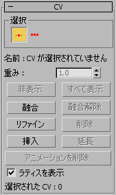 ここで説明する[CV]ロールアウト以外にも、カーブ CV サブオブジェクト レベルでは[ソフト選択](Soft Selection)ロールアウトが表示されます。