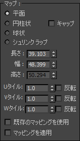 ビットマップ化されたディスプレイスメント用のマッピング パラメータがあります。[UVW マップ](UVW Map)モディファイヤを参照してください。