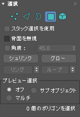ここのボタンをクリックすることは、モディファイヤ スタック表示のサブオブジェクト タイプを選択するのと同じことです。ボタンをもう一度クリックしてオフにすると、オブジェクト選択レベルに戻ります。