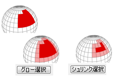 [シュリンク ラップ](Shrink)と[グロー](Grow)では、現在の選択のエッジから隣接するエッジを追加または除去できます。これは任意のサブオブジェクト レベルで使用可能です。