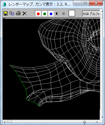 シーム カラーを変更するには、カラー見本をクリックします。既定値の色(緑)は、[UVW を編集](Edit UVWs)ダイアログ ボックスでシーム エッジに使用されるのと同じ色です。ただし、この 2 つは個別に変更できます。