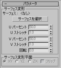 [サーフェス変形](SurfDeform)モディファイヤの機能は、パッチ サーフェスの代わりに NURBS ポイントまたは CV サーフェスを使用してサーフェスを変形する以外は、[パッチ変形](PatchDeform)モディファイヤと同じです。
