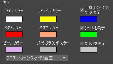 このチェック ボックスにチェックマークが付いている場合、選択されていないサブオブジェクトのうち、現在の選択で共有されているものは、この色でハイライト表示されます。ほとんどの場合、共有サブオブジェクトはエッジです。単一の頂点を選択している場合、その共有サブオブジェクトは頂点です。既定値ではチェックマークが付いており、青です。
