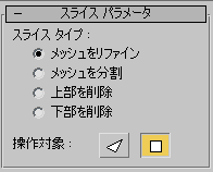 [スライス](Slice)機能と似ていますが、オブジェクトが編集可能メッシュまたはポリゴンである必要はありません。
