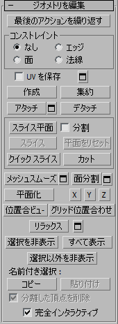 これらのコントロールの詳細は、「[ジオメトリを編集](Edit Geometry)ロールアウト([ポリゴンメッシュ](Polymesh)と[ポリゴンを編集](Edit Poly))」を参照してください。