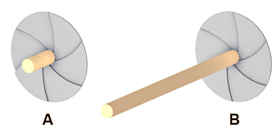 以下の図は、f11 の開口絞りに設定されたレンズを通過する光の量を示したものです。図 A はシャッタ速度が速く、少量の光しか通過しません。図 B はシャッタ速度が遅く、多くの光が通過します。