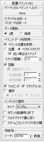 - ボタンをクリックし、パーティクル シードを参照する Particle Paint ヘルパーを指定します。