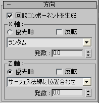 パーティクル シードの向きをコントロールできるようにします。このチェック ボックスにチェック マークを付けると、このロールアウトの他の設定が使用できるようになります。