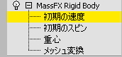 ヒント: インスタンス化されていないモディファイヤを使用する場合、リジッド ボディ モディファイヤの[修正](Modify)パネルのロールアウトは、一度に 1 つのプロジェクトでのみ使用できます。複数のリジッド ボディが選択されている場合、ロールアウトは表示されません。 ただし、[MassFX ツール](MassFX Tools)ダイアログ ボックスの