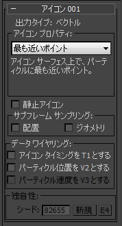 ランダム シードを設定し、他のランダムにシードされた関数から動作を区別します。値を入力するか、[新規](New)をクリックして、[シード](Seed)の値を変更し、ランダムな動作を変化させます。ランダム サーフェス ポイントとランダム ボリューム ポイントのアイコン プロパティでのみ使用できます。