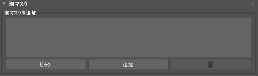 - [ピック](Pick)をクリックしてシーンからオブジェクトをピックして泡マスクとして追加するか、[追加](Add)をクリックしてダイアログから泡マスクを選択します。選択した既存の泡マスクを削除するには、[削除](Delete)をクリックします。