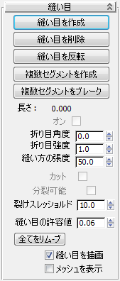 [縫い目](Seams)サブオブジェクト レベルで、シームとそのプロパティを定義および編集できます。