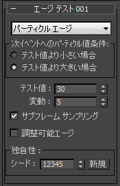 - テスト対象の特定のフレーム番号、パーティクル エージ(フレーム数)、またはイベントの持続時間(フレーム数)です。既定値は 30 です。